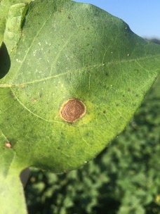 Target spot has also (fortunately) been inconsistent for us in recent years. This is a disease of high-yielding cotton and is mainly associated with a dense canopy.