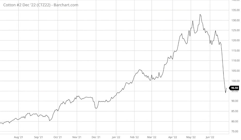 For example, December 2022 Cotton Future prices dropped from around 120 cents per pound to around 96 cents per pound as this article was written on June 28, 2022. What was the cause of the recent market plunge?