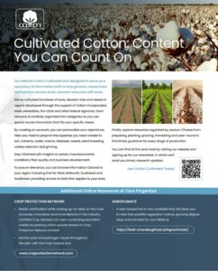 Available at cottoncultivated.cottoninc.com, Cotton Cultivated was designed to give producers easier access to the agricultural research they fund through the Cotton Research and Promotion Program, translating research findings into practical guidance aligned with the decisions being made throughout the growing season.