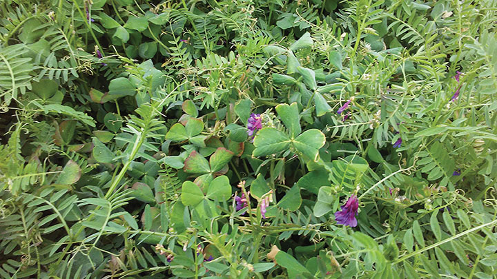 Cereal rye, crimson clover and hairy vetch cover crops.