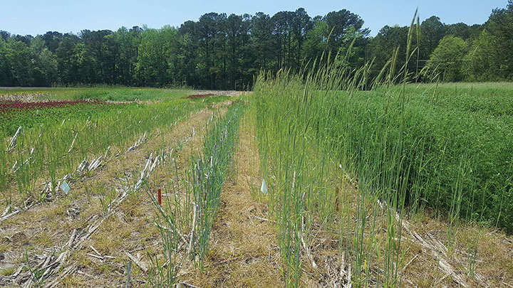 “Current results from a long-term experiment in Virginia shows that cover crops coupled with conservation tillage systems increased soil carbon 50% over the conventional control in just six years,” Frame said. Pictured here are cereal rye, crimson clover and hairy vetch cover crops in a field.
