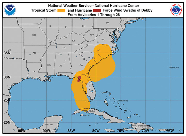 This year I received a number of requests about eligibility for tropical storm payments from Tropical Storm Debby after it occurred in early August. In most cases, the counties that did not receive primary status did not receive it due to the rainfall limit, not the wind limit.