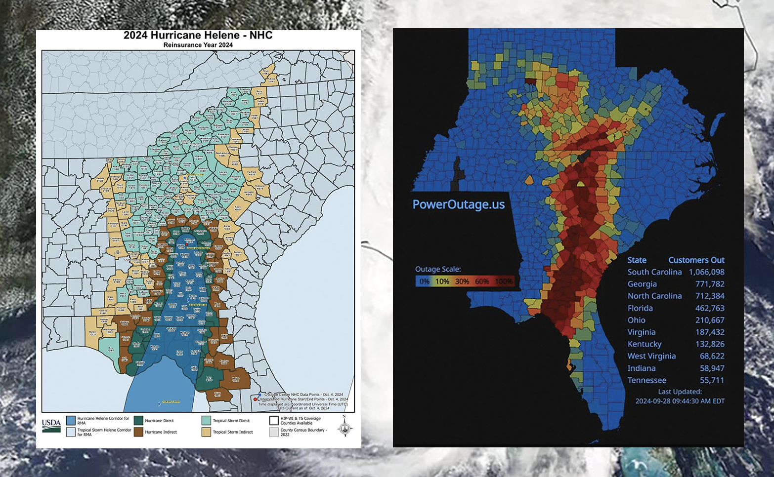 In most cases, once Hurricane Helene moved over Georgia, the hurricane insurance coverage overwrote the tropical storm coverage from Debby, although that was not true in all cases, especially in eastern Georgia.