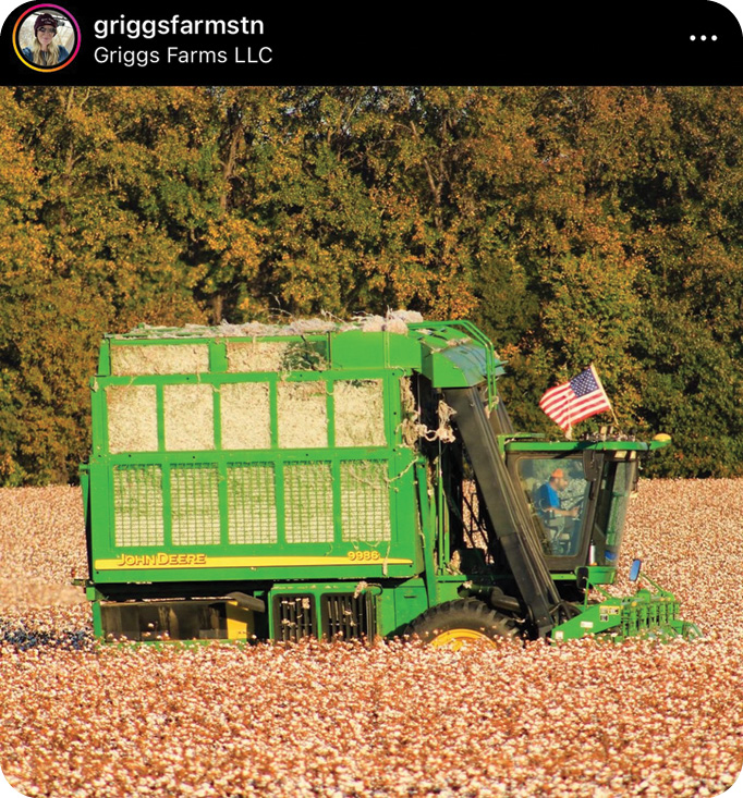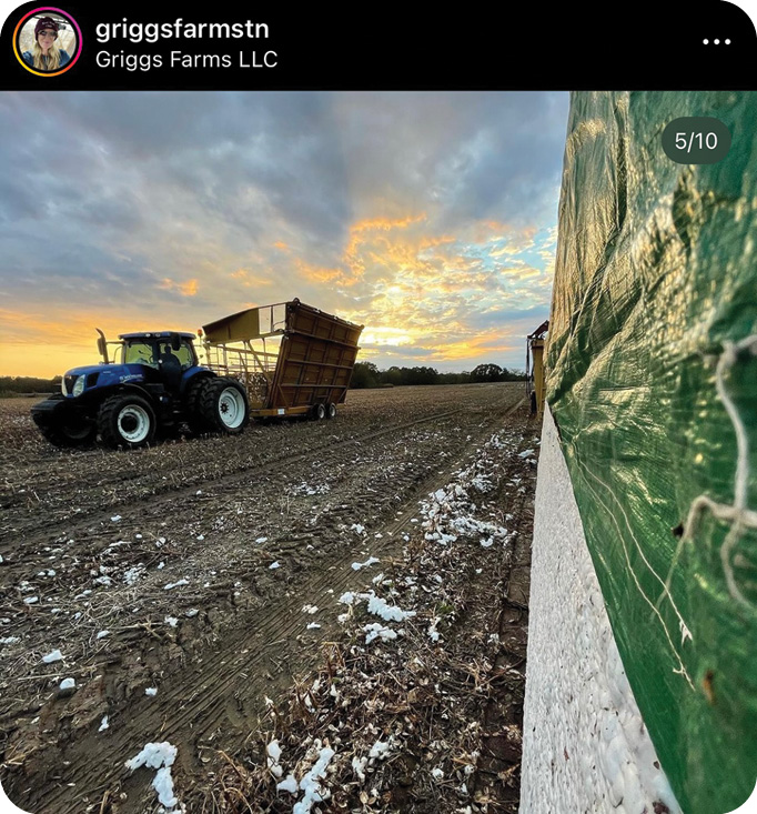 Matt and Kelly Griggs operate roughly 1,600 acres of cotton, corn, soybeans, and wheat in Humboldt, Tennessee. Matt, a University of Tennessee-Martin graduate, began the fifth generation of the Tennessee Century Farm, which can be traced back to 1882 when his great-great grandfather moved a cotton gin to the same, once-bustling Mason Grove community area where the Griggs work and live today.