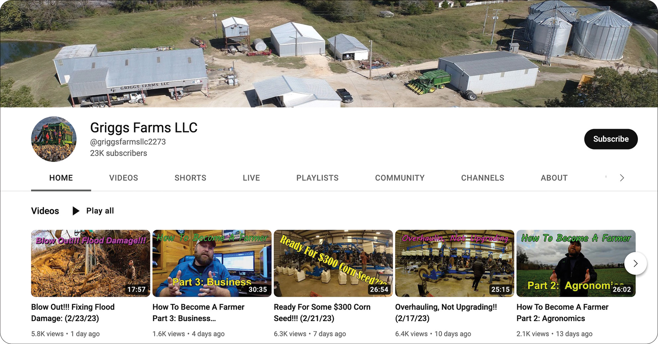 “In our occupation, there is no shortage of content. The big players are going to be our daily videos of what’s going on at the farm, but I also like to put out several videos a year dealing with specific topics like how a piece of farm equipment works, a series on how to start farming or even how government subsidies work. I want to have a real impact on people and the industry. I want to help change it for the better.”