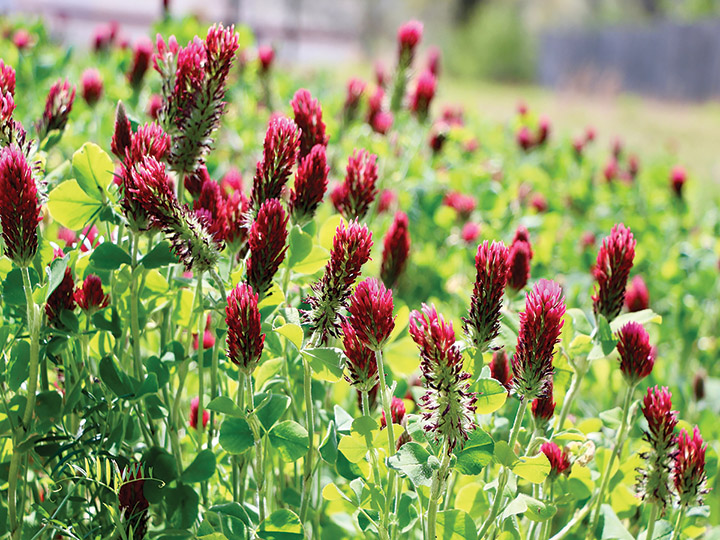 The biomass of a winter cover crop like crimson clover can double in two to four weeks during March and April — photo courtesy Mississippi State University Extension