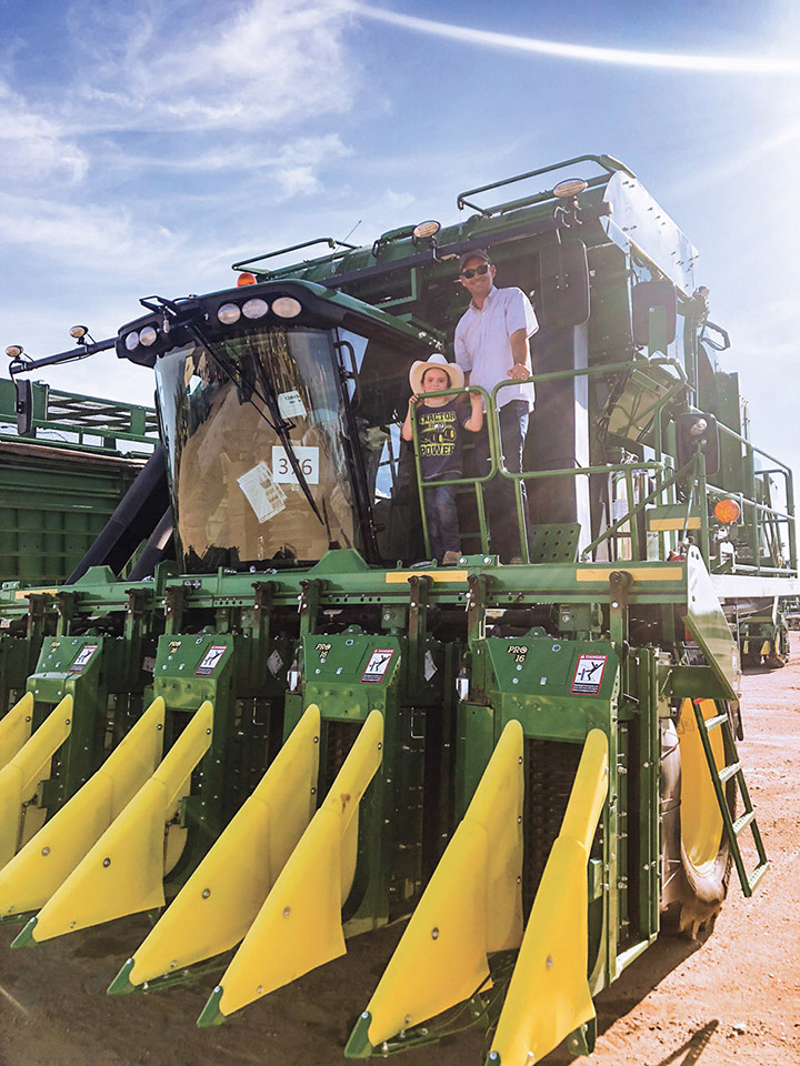 “As I was sitting in my office around 2011, 2012, I’m watching cotton prices hit $1-plus,” he says. “We had children by then, and that was getting tough in New York. So we moved back to Arizona in 2012. Today, we have about 20,000 acres under our umbrella in Pinal County. We farm between 5,000 and 6,000 acres of cotton every year.”