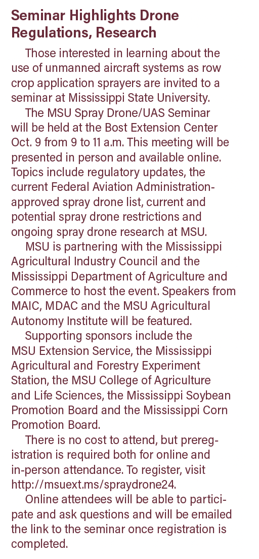 In December 2023, Mississippi adapted its own regulation. By February of this year, Mississippi Agricultural and Forestry Experiment Station had secured a special permit, allowing MSU to commence spray drone research.