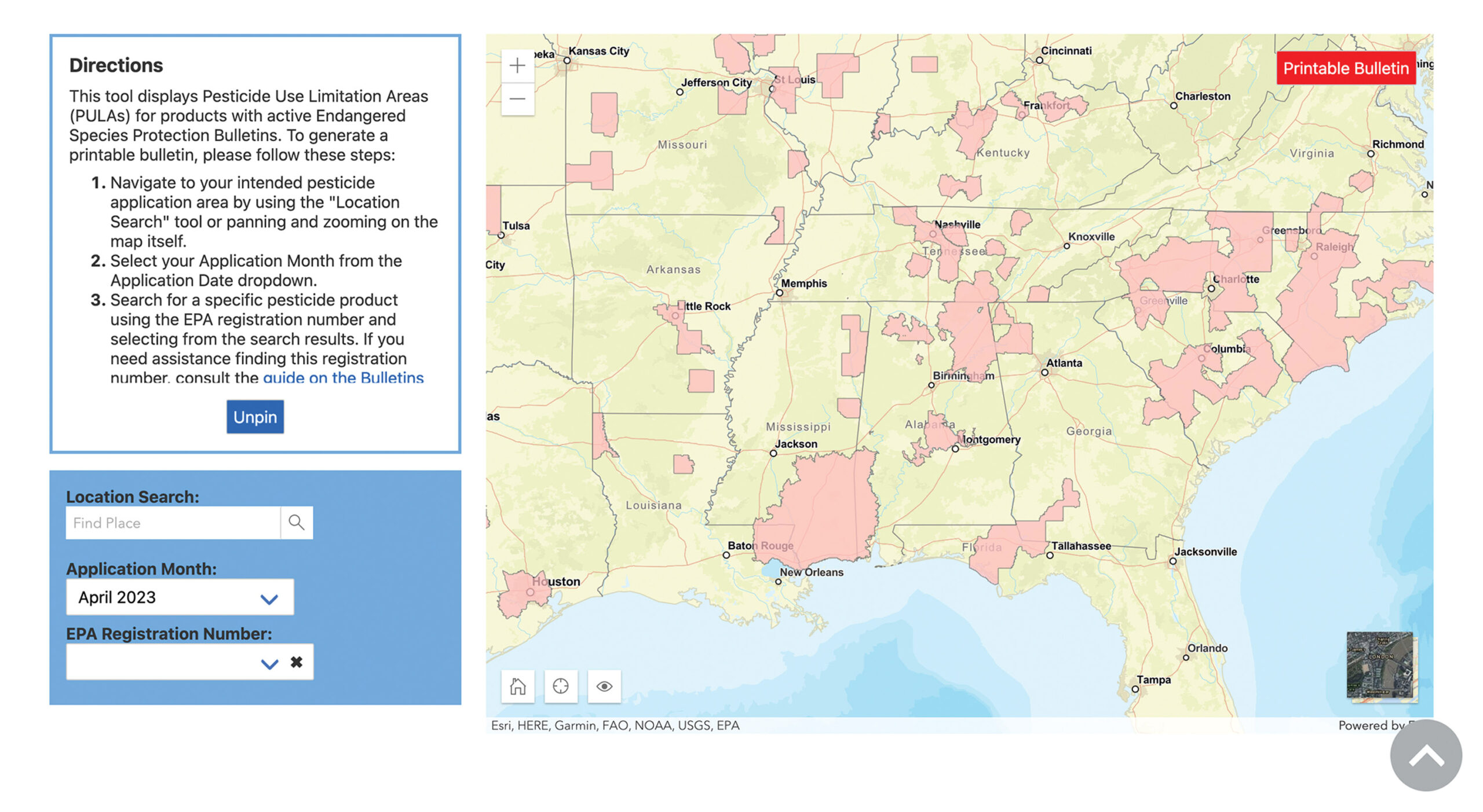 Information related to geographic pesticide use limitations is included in Endangered Species Protection Bulletins, which can be obtained through EPA’s website. As stated there, “Bulletins set forth geographically specific pesticide use limitations for the protection of threatened and endangered (listed) species and their designated critical habitat.”