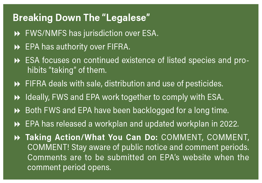In recent years especially, it has become increasingly critical for growers, crop advisors, Extension and a plethora of others throughout the agricultural industry to not just be aware of the ramifications from the ESA on their operations, but also be more and more involved.