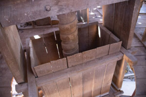 Chris: The move of the Goodman Gin is drawing closer. What makes this timber frame cotton gin unique is that the Goodman Gin is the last intact example of a true animal-powered gin. This gin was built just prior to the mechanization of the commercial cotton gins of the late nineteenth century, as it was described in the Sept. 24, 1977, issue of The Cotton Gin and Oil Mill Press. The Goodman Gin will be the central exhibit of the Cotton Heritage wing in the Phase III addition to the Center.