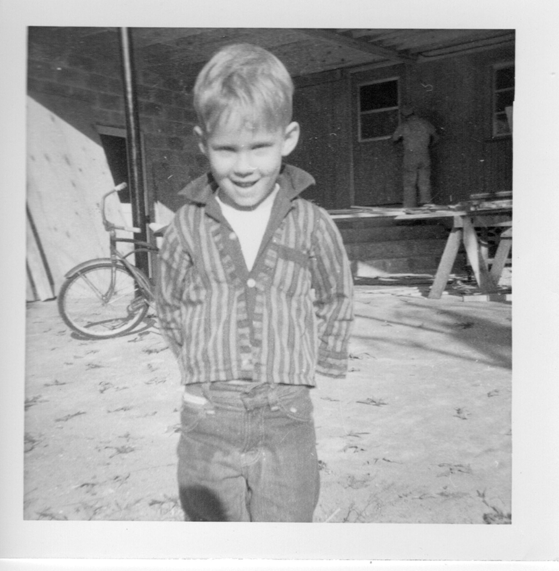 Upset that I might have nearly killed my cousin by not getting him that salt, I was distraught. When we drove up to my Grandparents’, I got out of the car just a wailing. Thinking they must have misunderstood who got hurt, they put me in the car and started off to the doctor when my uncles stopped them to say it was Greg who was injured. They got me out of the car and Greg got in. The doctors said that if the oil can had not hit a rib, it would have punctured his heart. Whew!