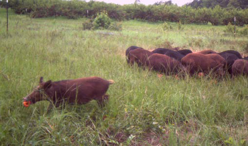 A sounder of wild pigs roams the Texas landscape — photo by Dr. Billy Higginbotham, Texas A&M AgriLife
