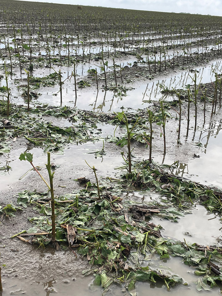 During mid-June, there was violent weather that ravaged crops across Mississippi. Several wind and hail events stripped cotton down to match sticks. There was cotton ranging from three to 12 nodes that was affected. Considering the date of the hail damage, there was really not a “best” option moving forward. Some growers with less severe damage opted to keep the cotton crop and see what happens. Others replanted either soybean or corn.